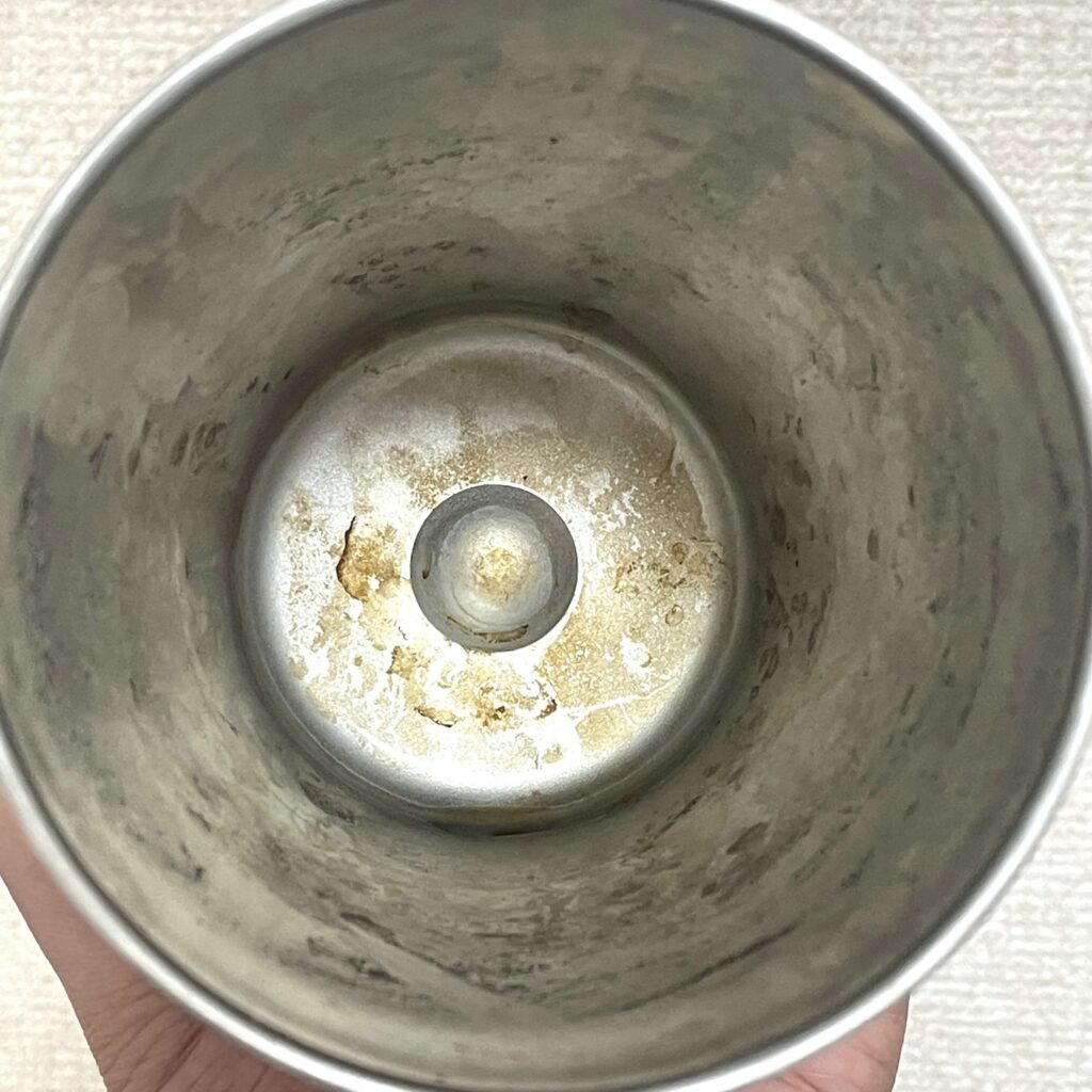 これはまだマシな方ですが、長期に使い込んでいる場合なら、全面にびっしりと汚れがついていて、そういう色のタンブラーかと見間違うような汚れが蓄積するケースもあります。